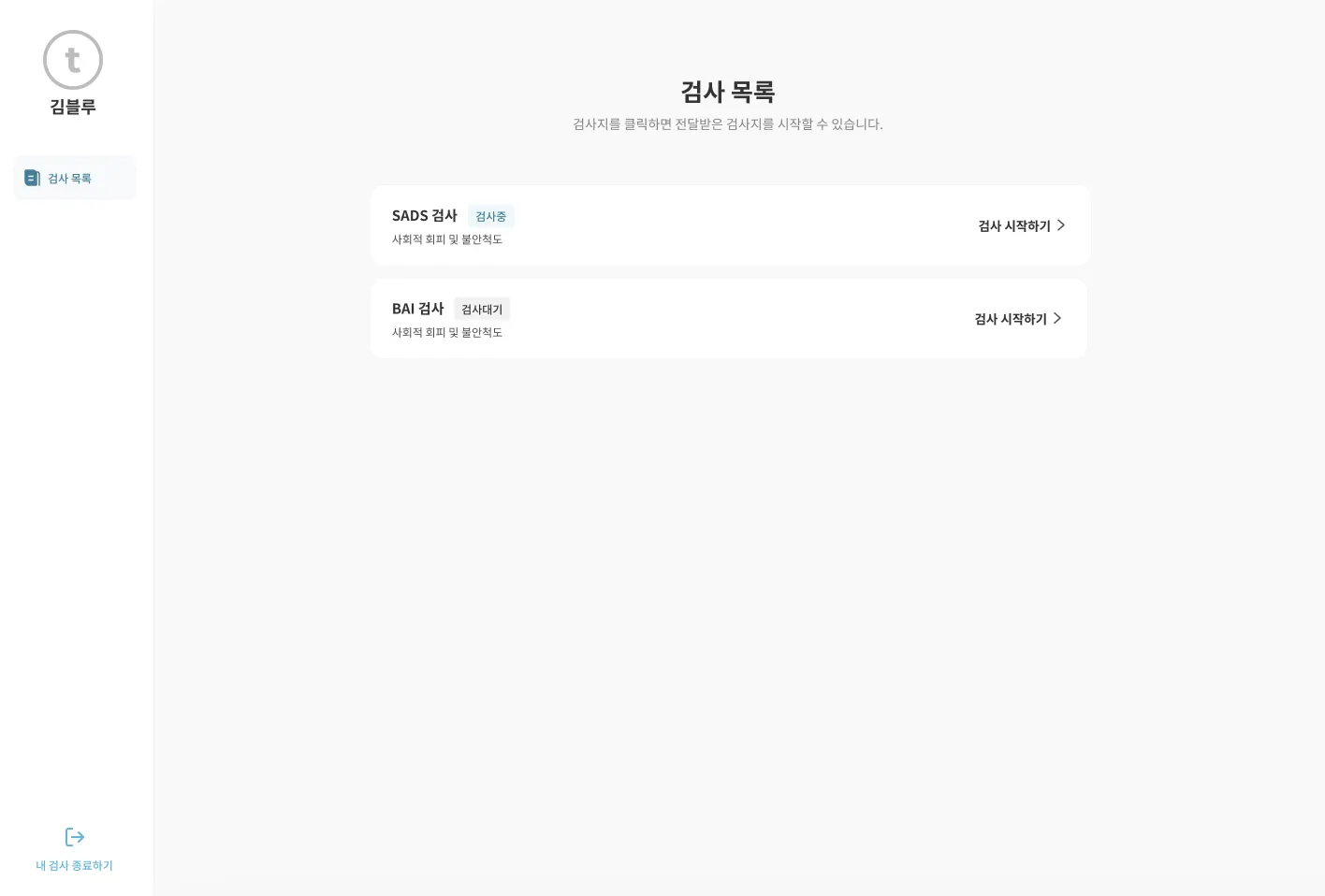 2) 환자의 개인정보를 입력하고, 조회 버튼을 누르면 처방된 척도지를 확인할 수 있습니다.