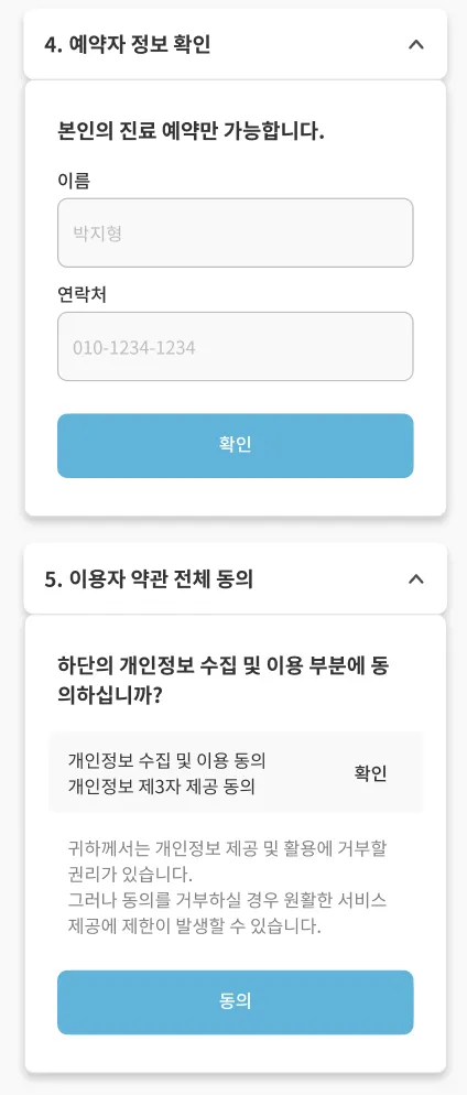 예약자 정보 확인 : 본인의 진료 예약만 가능합니다.