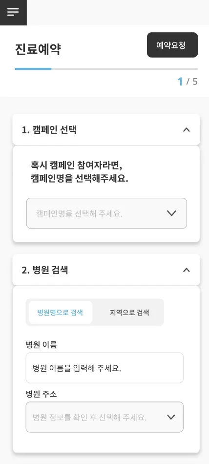 병원 검색 : 병원명 혹은 지역으로 검색하여 원하는 병원을 선택해 주세요.