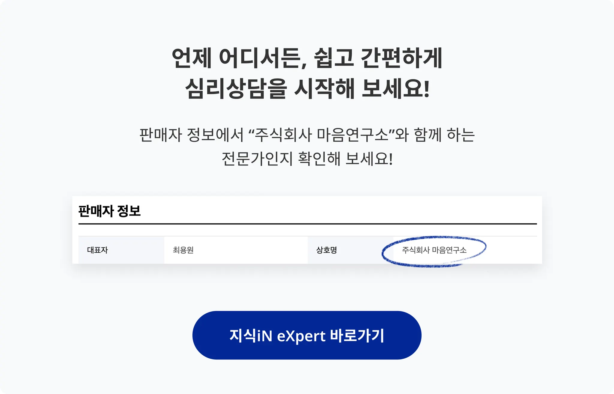지식iN은 마음연구소의 검증된 전문가분들을 온라인으로도 만날 수 있는 서비스입니다.