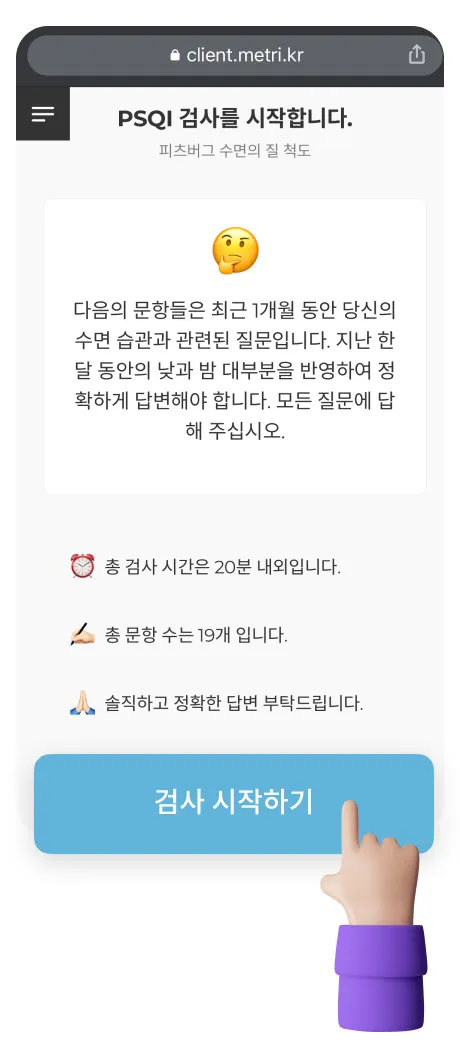 언제 어디서든 PC/모바일 등을 활용하여 간편하게 검사를 진행해 보세요!