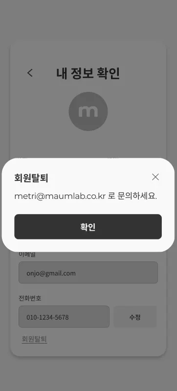 4) 회원 탈퇴의 경우, metri@maumlab.co.kr 로 문의주세요.