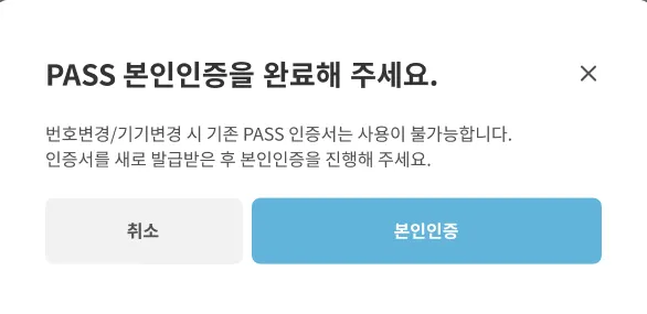 3) PASS 본인인증을 완료해 주시면, 정보 변경이 완료됩니다.