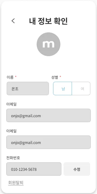 2) 핸드폰 번호 우측의 ‘수정’ 버튼을 눌러주세요.
