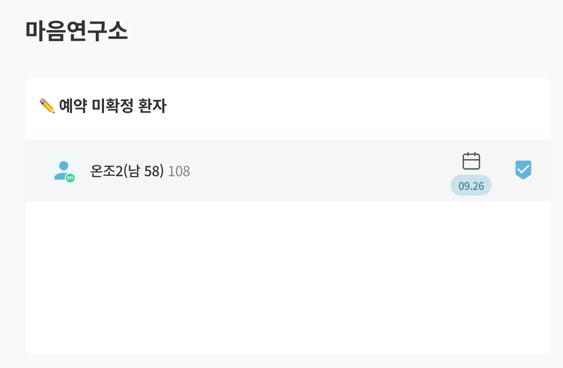 1) [진료] - [진료 홈]의 예약 미확정 환자 목록에서, 요청된 예약을 확인하여 처리할 수 있습니다.