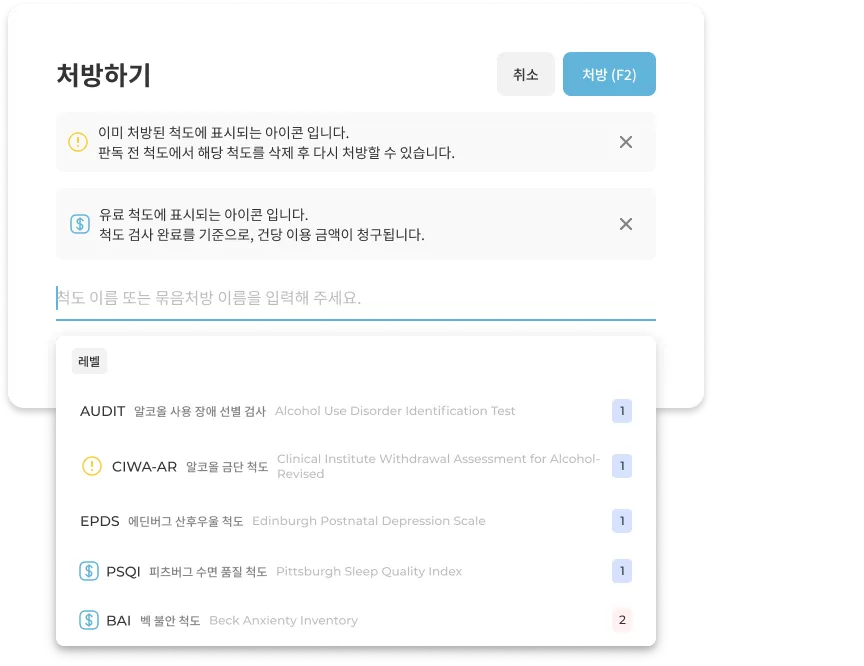 (*이전에 처방 되어 아직 판독이 완료되지 않은 척도가 있다면, 해당 척도는 중복 처방이 제한됩니다.)