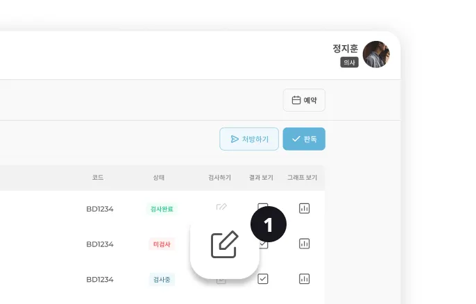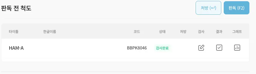 1) 환자에게 척도를 처방후 ‘검사’ 아이콘을 클릭하여 진행할 수 있습니다.