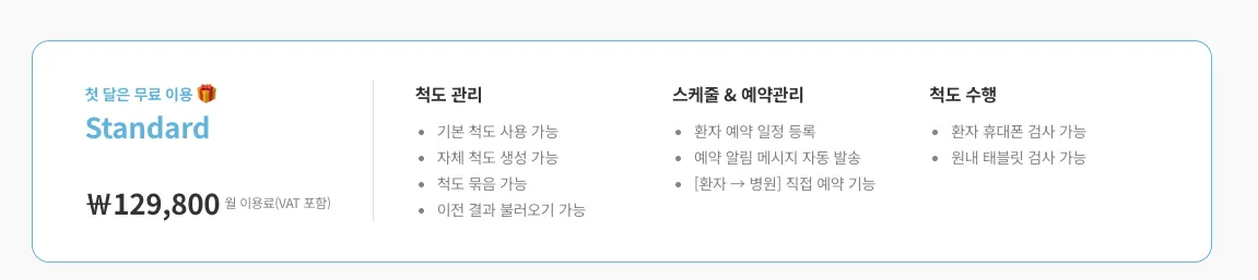 스탠다드 이용권 등록시, 메트리 미가입 환자에게도 척도 처방 및 검사 진행이 가능합니다.