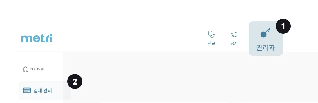 메트리 유료 서비스에 대한 사용 내역은 [관리자] - [결제관리] - [결제 정보]에서 확인 가능해요.